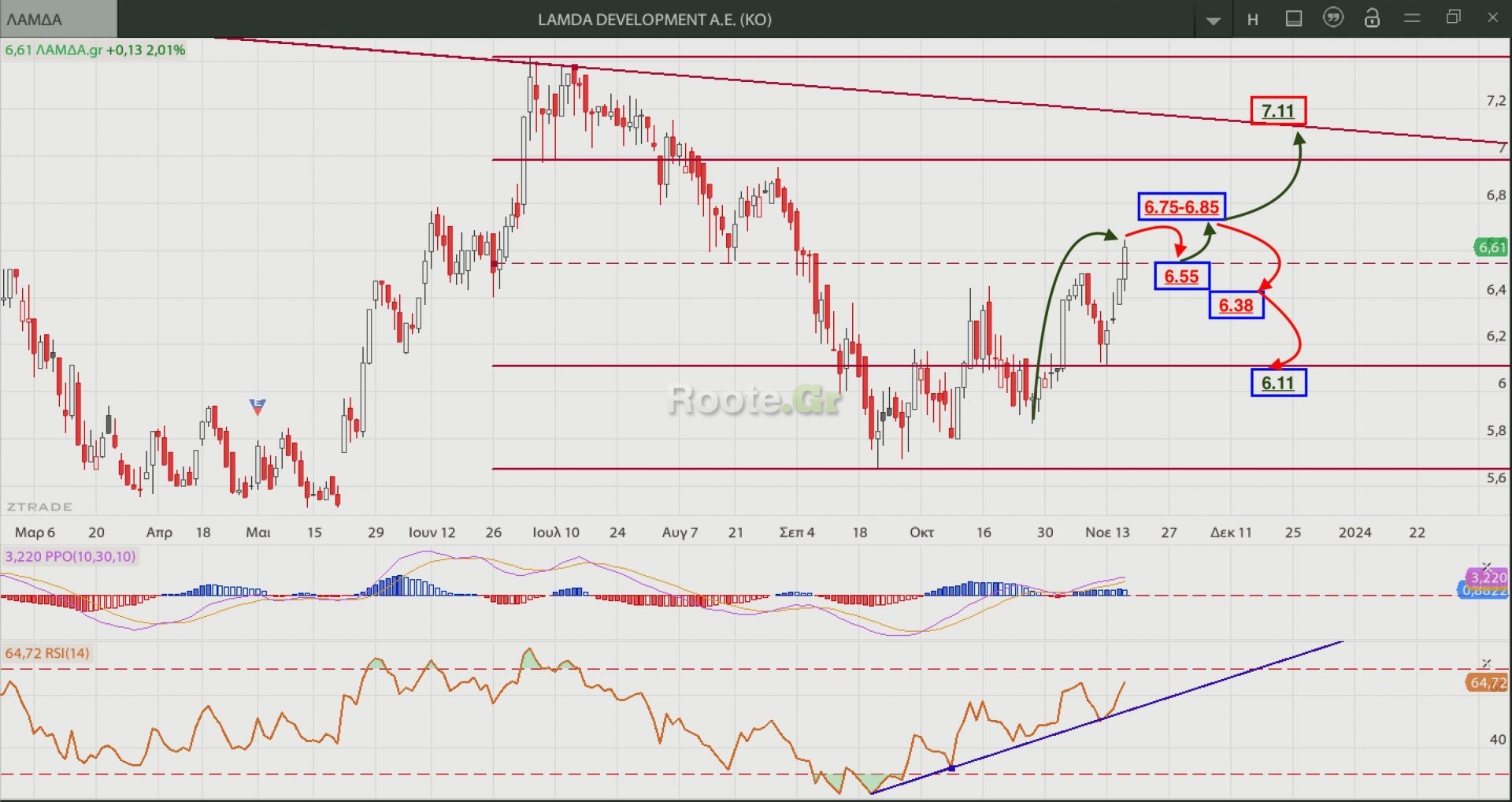 Για τη συνέχεια θα κρατήσουμε το χαμηλό της 13/11 (6.11) ως βασικό mob και το 6.38 ως κοντινή στήριξη. Η ζώνη 6.75-6.85 ως βασική αντίσταση απο την οποία θα μπορούσαμε να δούμε αρχικά μια διόρθωση όπως το σχεδιάζουμε στο διάγραμμα.