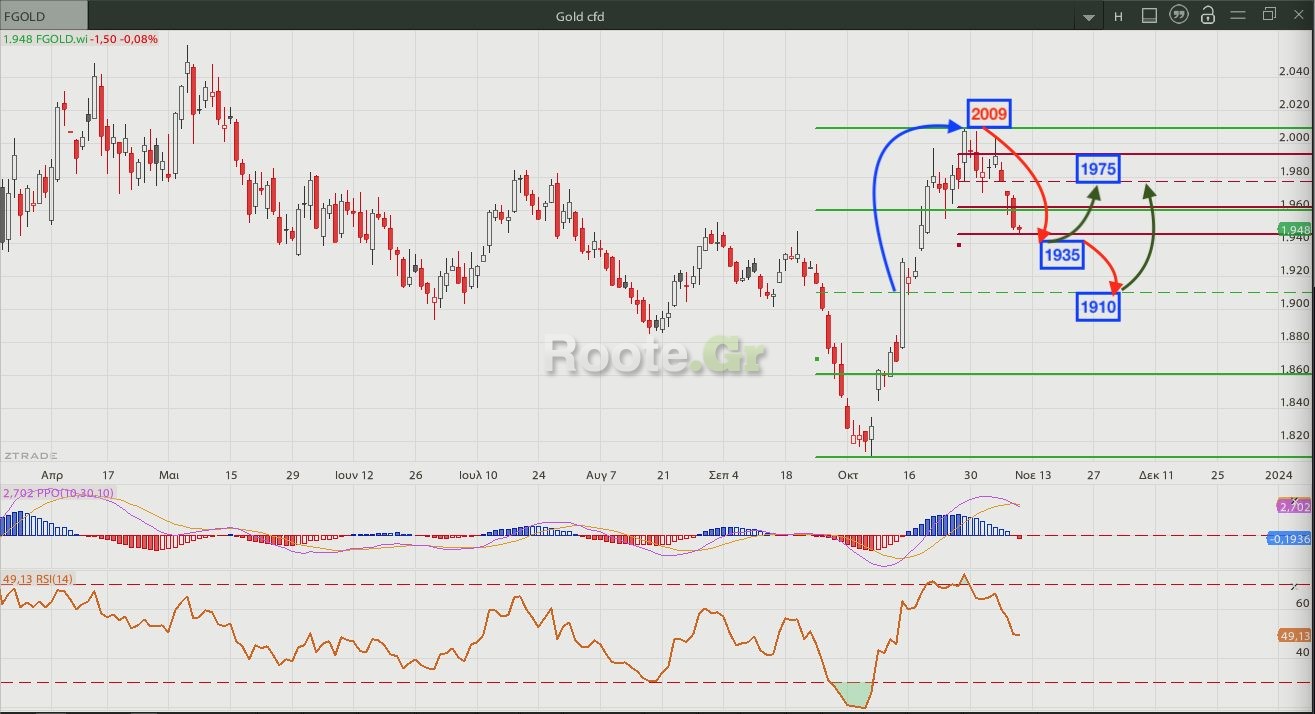 Για τη συνέχεια θα παραμείνουμε στο ίδιο μοτίβο. Με κοντινή στήριξη στο 1935 και βασικό mob στο 1910 προκρίνουμε μια ανοδική κίνηση αρχικά προς το 1975 που αποτελεί και την κύρια αντίσταση στην πάνω πλευρά.