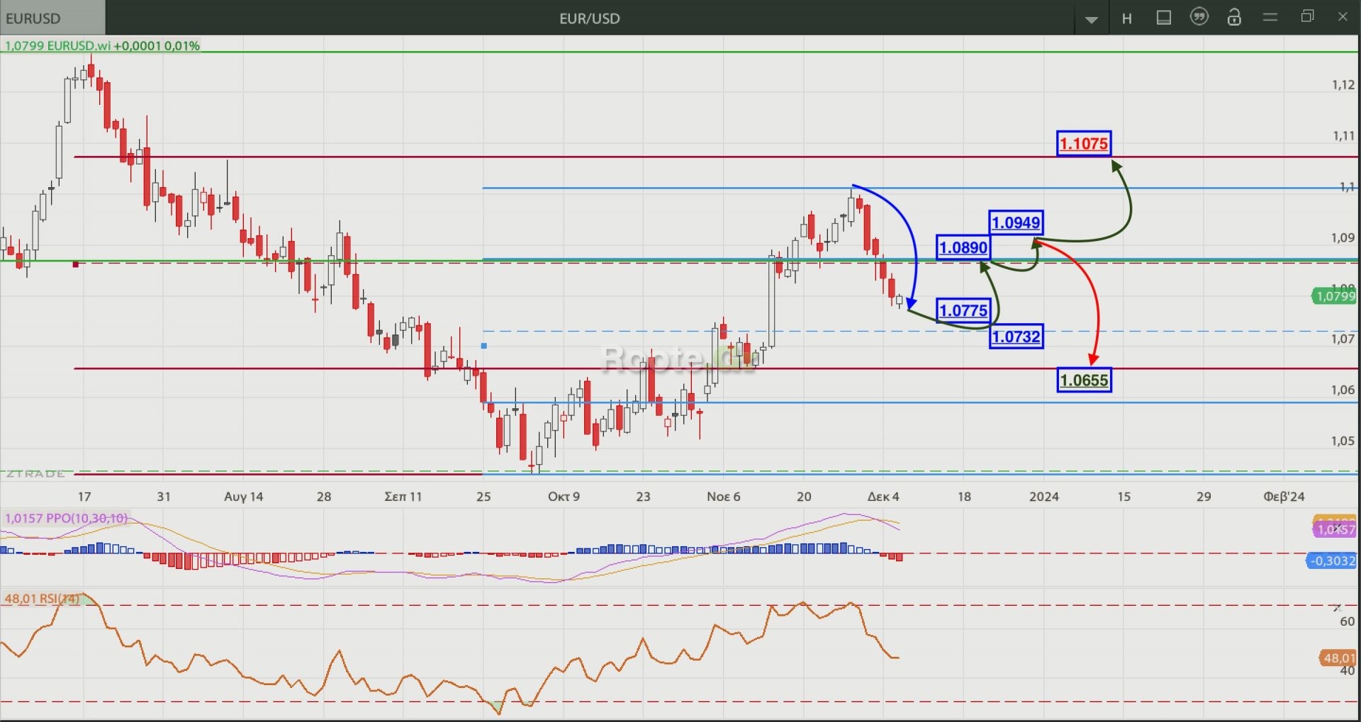 Βασικός στόχος και mob στην πάνω πλευρά παραμένει το 1.1075. Σε πιο μακροπρόθεσμη μέτρηση διακρίνουμε πως δεν θα ξεπεράσει το υψηλό του Ιουλίου (1.1275) και θα διασπάσει το χαμηλό του Οκτωβρίου (1.0448). Ενδιάμεσα γίνονται πολλές και μεγάλες κινήσεις που προσπαθούμε να εκμεταλλευόμαστε.