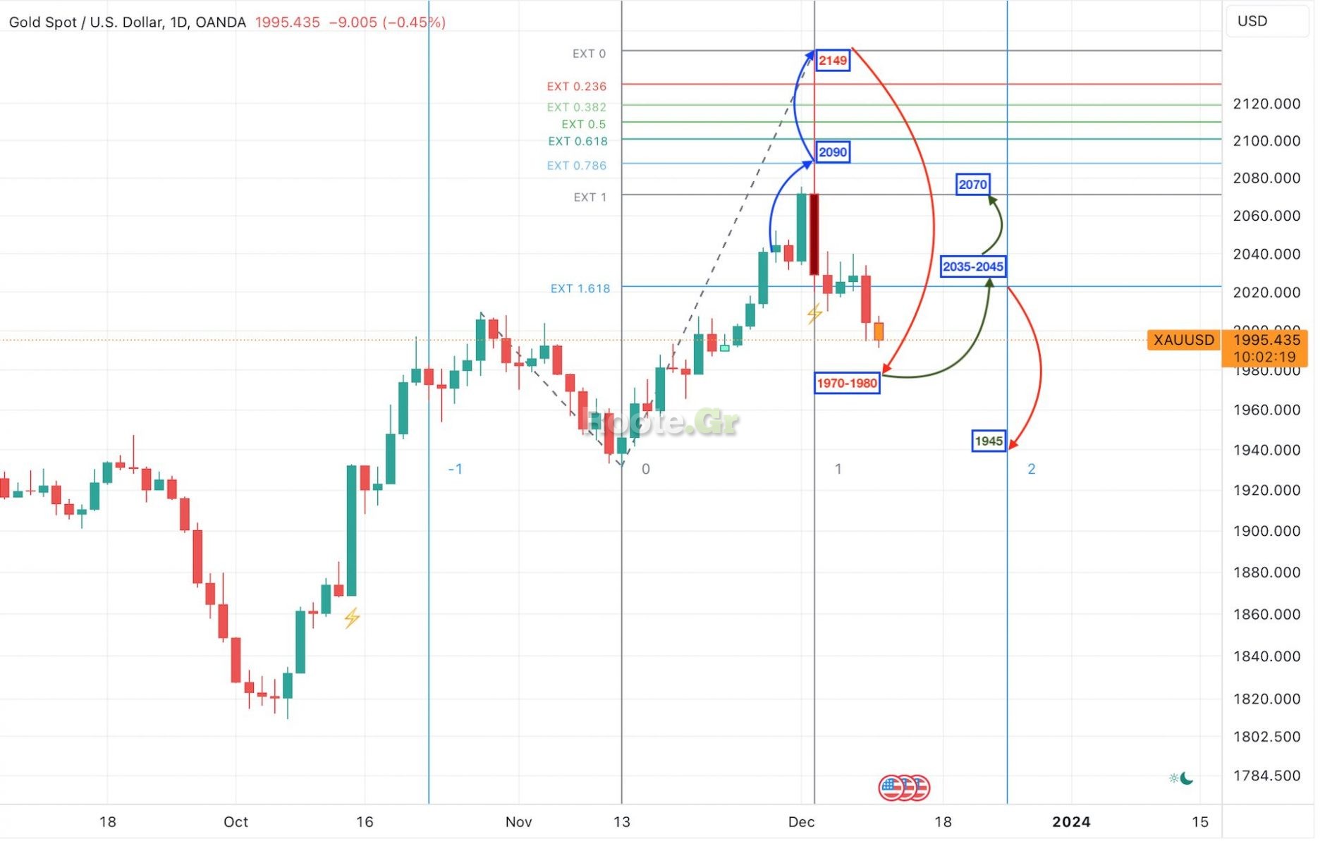 Στο τελευταίο update (εδώ) στις 29/11 προκρίναμε συνέχιση του ανοδικού σκέλους με στόχο το 2090 και το 2147. Είδαμε υψηλό στο 2149 σε μια εκπληκτική εφαρμογή του σχεδίου μας.