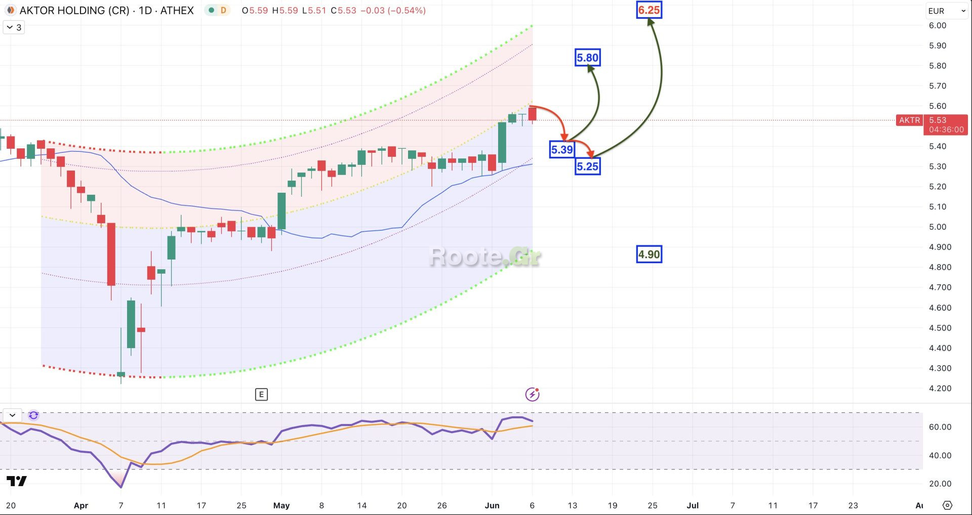 Για τη συνέχεια θα παραμείνουμε στο ίδιο μοτίβο, προκρίνοντας ανοδικούς στόχους με στήριξη στο 5.39 και κυρίως στο 5.25. Από τα επίπεδα αυτά είναι πιθανό νέο ανοδικό κύμα προς το 5.80 και το 6.25, που αποτελεί σε αυτή τη φάση την τελική επέκταση του τελευταίου ανοδικού σκέλους. Προϋπόθεση για το συγκεκριμένο σενάριο η διατήρηση των τιμών πάνω από το 4.90.